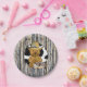 Sheriff Teddy Bear and Star Badge faux wood birthday party or baby shower small cake paper plates.