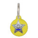 This custom dog tag is decorated on one side with a police badge and on the other with contact information.