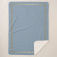This warm and cosy Sherpa blanket is shown in an antique blue with a gold-coloured scroll print all around the shape of this blanket.