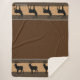 This warm and cosy Sherpa blanket is shown in a rich chocolate brown colour with tan, charcoal and grey printed border on each end. Yellowstone text and several elk walking across the borders complete the look.