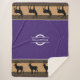 This warm and cosy Sherpa blanket is shown in a purple with chocolate brown, tan, charcoal and grey printed border on each end. Yellowstone text in centre with logo and several elk walking across the borders complete the look.