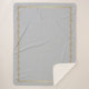 This warm and cosy Sherpa blanket is shown in a silver-grey with blue undertones called quick silver with a gold-coloured scroll print all around the shape of this blanket.