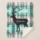 This warm and cosy Sherpa blanket is shown in a pretty forest Yellowstone Deer print.