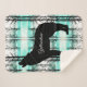 This warm and cosy Sherpa blanket is shown in a pretty forest Yellowstone Wolf print.