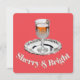 Raise a glass and a smile with this funny Christmas card. The holiday card features the humourous pun 'Sherry & Bright' in stylish typography, below a picture of a glass of sherry on a silver platter. A funny novelty greetings card for the festive season.