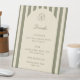 Birthday drinks menu sign featuring a hand-drawn coffee mug paired with elegant script and serif fonts in which your personalized information is written. The background is sage green stripes on a light background. Check out our store for more items from this collection.