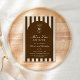 Birthday invitation featuring a hand-drawn coffee martini glass and coffee beans paired with elegant script and serif fonts in which your personalized information is written. The background is brown stripes on a light background. Check out our store for more items from this collection.