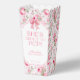 She's About to Pop Pink Bow Baby Shower Popcorn Favour Boxes . Girly pink Shabby Chic She's About to Pop Baby Shower Popcorn Box with beautiful pink roses pattern and pretty ribbon bow in Pink.