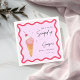 Celebrate with these She’s Been Scooped Up Bridal Shower Napkins, featuring a retro-inspired watercolor ice cream cone with a cherry on top. The design includes stylish script text and two playful wavy frames in pink and red, perfect for adding a fun, vintage touch to your bridal shower decor. These napkins are ideal for brides who love a blend of whimsical and retro vibes, making your event extra sweet and memorable.