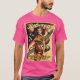 I give wanted to give this a 4 instead of a 5 because these Basic DARK T0shirts run unexpectedly SLIM or Narrow. Which is great if you do not have a potbelly, but I have a paunch. It isn't the shirt's fault that I've got a beer belly. The design and shirt itself is a quality cotton shirt. The color is more of a deep purple, but still a very pretty color. The Basic DARK T-shirts run a bit SLIMMER than the Basic Ts. The neck is a fraction narrower (or seems to be narrower) also. I'm a paunchy middle-aged woman and my neck is 12 inches (31cm) thick and the neckline fell about the same as in the photo of the man, and I had the desire to tug it a bit. So if you're a thick necked man or like loose shirts, be aware these are slimmer shirts. Once I get rid of my lockdown paunch it'll look great. The shirt washed well in cold water with no apparent bleeding. We don't have a dryer, so it hung dry. Did not shrink. Love the colors and the design. The design looks smaller on my shirt than it does on the model on-line. But still, it looks good on the shirt. The printing looks as it does on the model, just the size seems fractionally smaller. Washed garment in cold water, hung dry and design appeared unaffected.