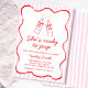 Celebrate the mom-to-be with this “She’s Ready to Pop” baby shower invitation featuring hand-drawn soda bottles tied with bows, playful bubbles, and a wavy red frame. The handwritten-style script adds a personal, cheerful touch to your party stationery.