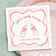 Add a playful touch to your celebration with these She’s Ready to Pop baby shower napkins. The design features cute hand-drawn soda bottles tied with bows, surrounded by a whimsical wavy frame and soft striped background. The pink, red, and white color palette creates a cheerful, coordinated look, while the handwritten-style text adds a warm and personal feel. Perfect for table settings, dessert displays, drink stations, or pairing with matching Ready to Pop décor.
