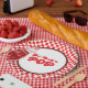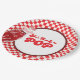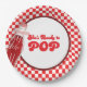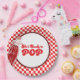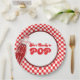 Serve up fun with these “She’s Ready to Pop” baby shower paper plates, featuring a retro soda pop bottle illustration and red chequerboard background. Perfect for a soda pop baby shower theme, these disposable baby shower plates add vintage diner charm to your celebration. Ideal for retro baby shower tableware, 1950s-inspired party supplies, and festive baby shower decorations.