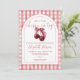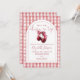 This stylish baby shower invitation, featuring cherries and bow, elegant script typography and arch on a gingham background, can be personalized with all your special baby shower details. Designed by Thisisnotme©
