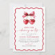 Celebrate the bride-to-be with this "She's the Cherry on Top Bridal Shower" invitation! Featuring sweet watercolor heart shaped cherries tied with a coquette bow and pops of cherry red, this playful design is full of feminine elegance. The scalloped border and whimsical details make it perfect for a fun, stylish celebration. Personalise with your party details and set the tone for a day that’s as sweet as the bride!