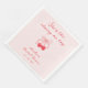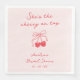 Fun red and pink retro style bridal shower napkins featuring a hand drawn style illustration of a pair of cherries topped with a coquette bow and headling "She's the cherry on top" in handwritten style font. Personalise with bride-to-be's name and shower date.