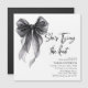 Add a touch of elegance to your celebration with this black Bow Bridal Shower Invitation Template. Featuring a chic blue bow and soft neutral tones, 'She’s Tying the Knot' bridal shower party,chic and modern bridal shower