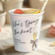 Introducing "She's Tying the Knot" Watercolor Black Bow Bridal Shower Paper Cups, designed by CaMiDesigns. These charming paper cups feature a delicate watercolor blue bow design, perfect for adding an elegant touch to your bridal shower celebrations. Ideal for serving drinks at your special event, these cups combine style and convenience, making them a must-have for any bridal gathering. For orders, shipping, product information, and further assistance, please get in touch with Zazzle Customer Care directly.