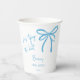 She's tying the knot blue ribbon bow coquette bridal shower printed paper cups personalised tableware simple ribbon bow bridal shower table decor