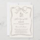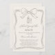 A soft ivory colored background, decorated with a hand drawn taupe colored bow. Personalize and add a name and party details.