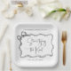 These minimalistic script She's Tying The Knot square paper plates are the perfect way to celebrate your bridal shower in style. Features elegant and modern typography, plus a cute bow. You can personalise this design by clicking on "Personalise this template" or if you wish to change the font, background colours or arrange the design elements in a different way you can click on "Edit using Design Tool".