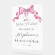 This watercolor bridal shower welcome sign features a pink bow with rhinestones on a white background with modern script typography. Personalise it with the bride's name and bridal shower date. Matching bridal shower party products also available.