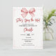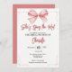 dd a touch of romance and charm to your celebration with this elegant "She’s Tying the Knot" Bridal Shower Invitation featuring a soft red satin bow, whimsical script font, and graceful corner flourishes. This design blends modern calligraphy with a classic layout, making it perfect for a bridal shower, engagement party, or bride-to-be gathering. The red and blush tones give it a bold yet feminine flair, ideal for a winter, romantic, or Valentine's-themed bridal shower. Customise with your event details to make it uniquely yours.