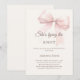 A soft ivory colored background, decorated with a light pink bow. Personalize and add a name and party details.
