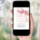 An elegant white background, decorated with a pink coloured bow. Personalise and add a name and party details.