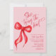 She's Tying the Knot Pink Red Bow Bridal Shower Invitation