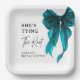 She's Tying The Knot Turquoise Bow Bridal Shower Paper Plate
