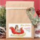On these Holiday decorative stickers, a Shetland Sheepdog sits in a pretty red and gold decorative sleigh. Beside the dog sits gift packages tied with colourful bows. The gold script text at the right says "MERRY CHRISTMAS" and your custom text is in red. Perfect for your Christmas correspondence or gift packages! There are many other breed images and products at Dog Village.