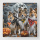 Shetland Sheepdog Halloween Spooky Square Wall Clock