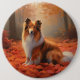 Shetland Sheepdog in Autumn Leaves Fall Inspire 6 Cm Round Badge