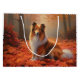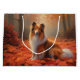 Shetland Sheepdog in Autumn Leaves Fall Inspire Large Gift Bag