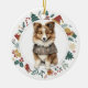 This cute Holiday ornament features a watercolor image of an adorable Shetland Sheepdog puppy dressed in his winter sweater. The image is framed within a colourful circle wreath made up of various Holiday images, including a snowman, bells, candy cane, stocking, holly, and more! The back of the ornament has the same wreath image with your custom text in green, gold, and red.