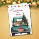 A teal blue pickup truck carries a decorated Holiday tree and gift packages on the front of this cute Christmas card. A beautiful Shetland Sheepdog looks out from the tailgate. A rustic wooden sign on the back bumper says "Christmas Cheer". At the top of the card is a string of Holiday lights, and custom text which currently says "From Our House to Yours". The inside of the card has more text fields for you to customise.