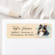 These awesome return address labels featuring your name in a modern script font and your address in a clean sans serif font paired with an adorable watercolor image of a Shetland sheepdog on a watercolor background would be perfect for all your mailing needs!