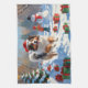 Shetland Sheepdog Running Snow With Christmas Hat Tea Towel