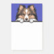 Adorable Sheltie (Shetland Sheepdog) Post-it notes for dog lovers, featuring a sweet and fluffy Sheltie puppy peeking over a ledge with a blank space below for notes, reminders, or doodles. A thoughtful gift for Shetland Sheepdog owners, dog moms, dog dads, trainers, veterinarians, or anyone who loves this intelligent and graceful breed.