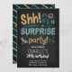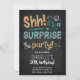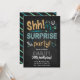 Edit the text to personalise this fun blue surprise birthday party invitation. Features bold typography and cute accents.