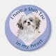 The Shih Tzu lover will enjoy this design. A heart encloses a cartoon style Shih Tzu dog surrounded by the text "I have a Shih Tzu In My Heart". Want it on a men's style instead of a women's or a tank top instead of a sweatshirt? Look for the Select a different shirt style link to choose. Also look for Shih Tzu buttons, mugs, mousepads and other items.