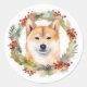 Shiba Inu Christmas Wreath Festive Pup Classic Round Sticker
