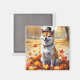 Shiba Inu In Autumn Leaves Thanksgiving Art Magnet