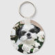 Black and white Shih Tzu face among the white roses cute dog lovers keychain