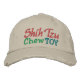 Name your Dog ! Actually, my Shih Tzus (Big Jake, Southern Sadie, and Gutsy Gogee) don't chew on my cap. They go wild when I put it on, because it signifies "going for a walk". If I want to wear it just to do yard work, I have to sneak the cap outside under my shirt.