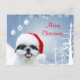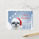 Black and white Shih Tzu dog dons a Santa hat to get in the mood for the holidays dog lovers Christmas postcard