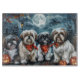 Unleash the spooky spirit with this eerie Halloween design featuring a pack of dogs under a dark, moonlit sky, surrounded by flying bats and glowing pumpkins. Perfect for those who love a touch of frightful fun with their furry friends!