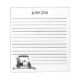 This cute shih tzu, wearing a traditional golf newsboy cap and sitting in a golf cart, makes the perfect notepad design. Just add your name for a personalised touch!