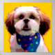 A coloful Shih Tzu with a polkadot bandanna appears on a great canvas print making a great gift for Shih Tzu lovers direct from CoochiePooch, your source for fun dog art by Rebecca Stringer Korpita